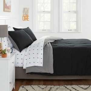 7pc King Solid Microfiber Reversible Comforter & Sheets Set Black/Dark Gray - Room Essentials™