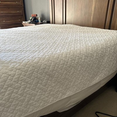 [This review was collected as part of a promotion.] I was excited to try out this Tommy Bahama diamond isle green quilt! I love the color, so relaxing for a bedroom. The quality is great and is comfortably soft. It is however, a little thin and I need another blanket while sleeping.