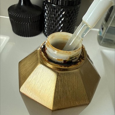 I bought this soap dispenser to match my gold fixtures in my newly remodeled bathroom in March 2025. 5 months later and the bottom rim of the dispenser is rusted all the way around.