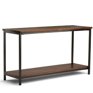 Solid Wood Industrial Console Sofa Table with Large Open Shelf and Metal Frame