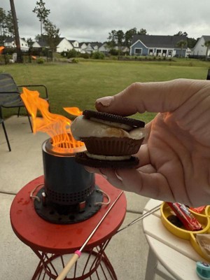 This thing is great! I took it to a recent family gathering and my 80 year old mother-in-law made her first S’more — and then had a second one! The heat deflector helped keep everyone around the 4’x4’ toasty and everyone was impressed by the quality of the Mesa and the S’mores kit components. We burned a mix of small hardwood chunks and pellets, and there was no smoke, and almost no ash to clean up afterward.