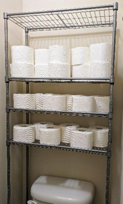 This rack was assembled quickly with no tools needed. Parts simply screw together. The shelf height and bottom support bar height are fully adjustable. Right now I am using it store a club pack of toilet rolls but it could hold almost any lightweight bathroom items.