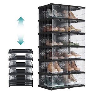 Shoe Boxes,Stackable Shoe Storage Organizer, Set of 2 Integraed Shoe Cabinets, Foldable and Portable Black