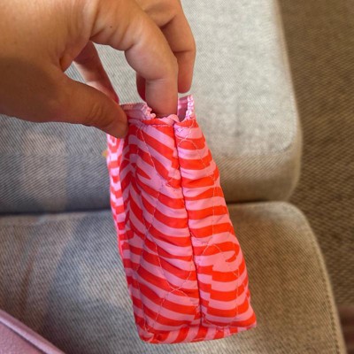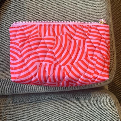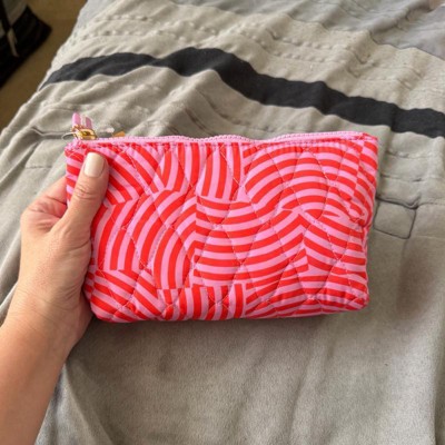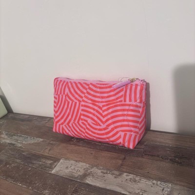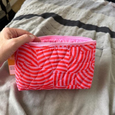 [This review was collected as part of a promotion.] I love the bright, fun colors of this small makeup bag. It also has a fun striped style pattern with a bright pink zipper. This is perfect to store all your makeup essentials for organized storage or for easy on the go travel. It is lightweight and made with recycled polyester which I like. I use it for all my makeup in my bathroom cabinet.