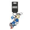 Show off your love for Sonic the Hedgehog with this vibrant keychain featuring four fun rubber charms: Sonic, a gold ring, a blue chaos emerald, and a blue S. Measuring 1.88" x 1.88", this keychain is made with durable hard enamel and zinc alloy materials. It's an eye-catching accessory for any Sonic fan, perfect for attaching to your bags or keys. With no care required, this keychain is ready to accompany you on your adventures in style!