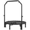 - Anti-Slip and Safe: This rebounder with handle and rubber sleeves is balanced and stable, with spring covers that protect your feet. Dimensions: 40" Dia. x 39"-48.4" H. Folded: 28.7" L x 14.2" W x 3.1" H. Maximum load: 330 lbs. capacity