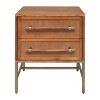 Our elegant Sophia Nightstand, with its woven rattan panels, is sure to enhance any bedside environment. The textural quality of the rattan panels brings visual interest to this beautiful nightstand. In addition, the finish is set off strikingly by the contrasting brass finish on the metal understructure and the handles. Two drawers offer convenient bedside storage.