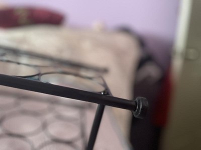 Halfway upon putting this together, I realized there was a piece of metal obstructing the screw hole. I tried to pull it back with pliers, but that didn’t fix anything. The design flaw affects the outside of the hole as well since it creates raised and jagged edges, making it impossible for the screw to go in even once the piece of metal that was blocking, the inside of the hole was removed.
