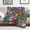 Soscooter Christmas Cartoon Festive Blanket With Santa Gift Candy Pattern Teal Background Holiday Throw 40x50 inches