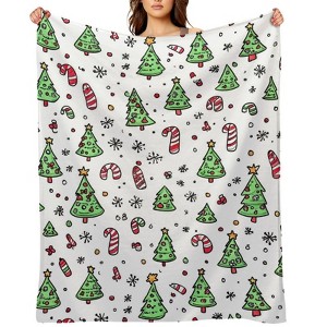 Soscooter Christmas Flannel Blanket White Background Christmas Tree Candy Cane Pattern Cozy Christmas Holiday Throw 60x80 inches