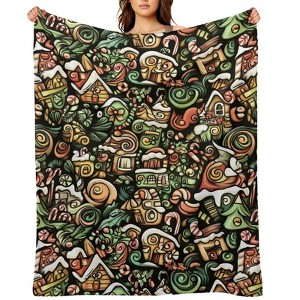 Soscooter Christmas Flannel Cozy Throw Blanket Gingerbread House Candy Dense Graffiti Pattern Winter Holiday Blanket 40x50 inches
