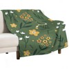 Soscooter Dark Green Flannel Blanket Soft Cozy Floral Blanket with Yellow White Flowers and Green Leaves for Sofa Bed 40x50 inches