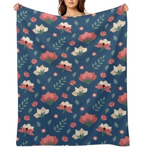 Soscooter Flannel Blanket Dark Blue Base Pink White Floral Pattern Soft Cozy Throw Blanket for Sofa Bedroom Home Decor 30x40 inches