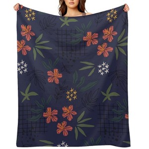 Soscooter Flannel Blanket Dark Blue Tropical Floral Leaf Pattern Soft Warm Throw Blanket for Sofa Bedroom Home Decor 40x50 inches