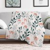 Soscooter Flannel Blanket Floral Pattern Soft Cozy Throw for Couch Bed Home Decor Pink Flower Dark Green Light Blue Leaf Warm Blanket 50x60 inches