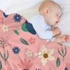 Soscooter Flannel Blanket Pink Base Blue White Pink Floral Green Leaf Pattern Soft Cozy Throw Blanket for Couch Bedroom Home Decor 30x40 inches