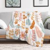 Soscooter Flannel Blanket White With Pink Orange Blue Floral Leaf Pattern Cozy Soft Throw For Home Decor 50x60 inches