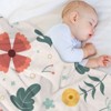 Soscooter Light Beige Flannel Blanket Soft Cozy Floral Blanket with Red Orange Yellow Green Flowers and Leaves for Home 30x40 inches
