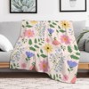 Soscooter Light Beige Fleece Blanket Pink Yellow Blue Flowers Green Leaves Soft Cozy Throw Blanket for Couch Bed Home Decor