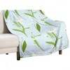 Soscooter Light Blue Flannel Blanket Soft Cozy Floral Blanket with White Flowers Green Leaves for Home Decor 30x40 inches
