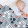 Soscooter Light Gray Blue Flannel Blanket Floral Pattern Soft Cozy Blanket with White Orange Brown Flowers for Sofa Bed 40x50 inches