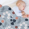 Soscooter Light Gray Blue Flannel Blanket Floral Pattern Soft Cozy Blanket with White Orange Brown Flowers for Sofa Bed 60x80 inches