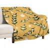 Soscooter Mustard Yellow Flannel Blanket Soft Cozy Floral Blanket with White Small Flowers Green Leaves for Bed Couch 30x40 inches