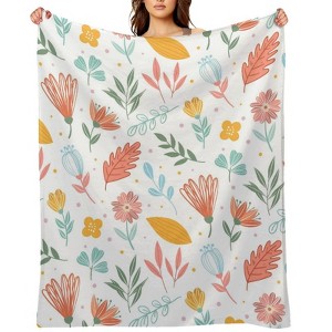 Soscooter White Flannel Blanket Colorful Floral Pattern Soft Cozy Blanket with Orange Pink Blue Flowers for Home Use 50x60 inches