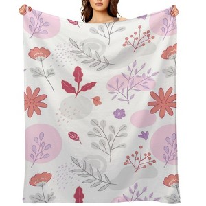 Soscooter White Flannel Blanket Soft Cozy Floral Blanket with Pink Purple Elements and Leaves for Bed Couch 30x40 inches
