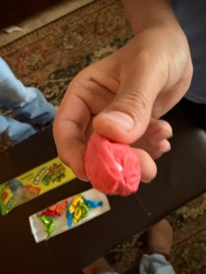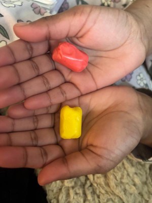 [This review was collected as part of a promotion.] The kids love them, they even asked for more when we get the chance to go to the store, they smell delicious the shape is just right, has the most enjoyable tartness and dissolves easy when chewing. Pink color in the inside