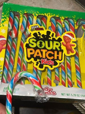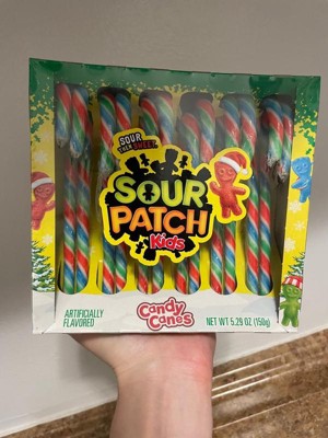 - SOUR THEN SWEET candy canes featuring colorful candy stripes of classic SOUR PATCH KIDS fruit flavors