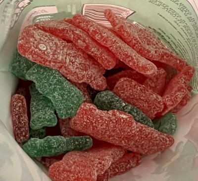 [This review was collected as part of a promotion.] I actually can't eat these bc I'm allergic to red dye, but kids aren't!! They loved them! They love any holiday themed sour patch kids. They said they were perfect and they wanted more.