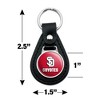- DURABLE LEATHER KEYCHAIN: Give your keys some street cred with our leather keychain with durable resin-topped emblem. Pocket-sized for convenience, this keychain easily stows away in purse, pocketbook, or evening bag. The easy-to-spot image makes it perfect for keeping track of that special set of keys.