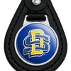 - QUALITY MATERIAL: Our durable round keychain is crafted from leather with a glossy resin-topped emblem featured design shown on one side. Approximately 1.5" (3.8cm) x 2.5" (6.4cm) in overall size, emblem is 1" (2.5cm)..