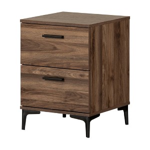 South Shore Slendel Side Table Natural Walnut: Modern Design, Metal Legs, Dual Storage Drawers