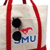 Southern Methodist University Primary Logo Canvas Tote Bag With External Pocket, Reusable Shoulder Bag for Shopping, School, Beach