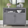 This impressive Southport Buffet lends storage and style to any room. Made of sturdy wood composite in a charcoal gray finish, this buffet has ample storage and gorgeous understated silver hardware. The double-door cabinet opens to reveal an adjustable shelf for tucking away all of your dishes and entertaining essentials. The open shelf above the cupboard is great for showing off your most prized items. Extra details like the crisscross design on the sides and the smooth top make it that much more special.