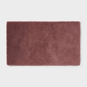 Lend cozy vibes to your bath space with this Spa Plush Bath Rug from Threshold™. This high-pile bath rug is crafted from a soft fabric with taller tufted loops that feel soft underneath your feet and help keep your floors dry as you step out of the bath. This rectangular bath rug is designed with latex backing to prevent it from sliding and help keep it in place, while the machine-washable design allows for a quick refresh when needed. Designed in a solid hue, it's sure to complement different bathroom decor styles.