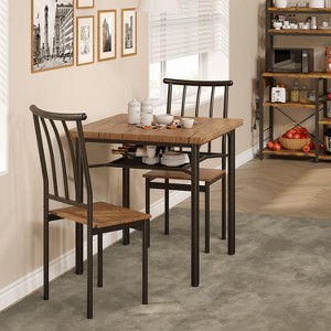 This 3-piece kitchen table set is designed for compact living. Featuring a sturdy steel frame, adjustable feet, and a waterproof surface for easy maintenance, it delivers exceptional durability and stability. The chairs conveniently tuck under the table when not in use, maximizing space in apartments, condos, or kitchens. Enjoy ergonomic comfort and hassle-free assembly for a practical dining solution.
