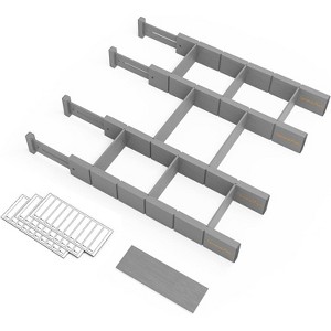 Set of 4 Bamboo Expandable Drawer Dividers with Labels,with 9 Inserts (17-22 in,Gray)