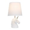 Add a touch of personality to your decor with this fun and exciting unicorn 15.5" lamp! With a white resin base and touches of shimmering silver glitter this lamp is sure to illuminate any room in style. This lamp would be perfect for bedrooms, kids and teens, college dorms or nurseries!