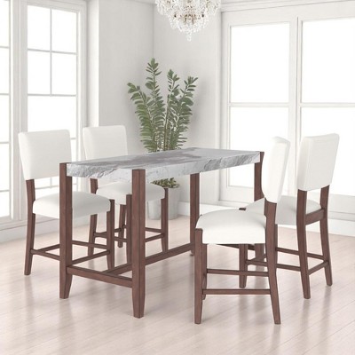Spassway 4-Piece Counter Height Dining Set with USB Port Bar Table with 3 Fabric Bar Stools Dining Table Set Pub Table Set for Small Rooms