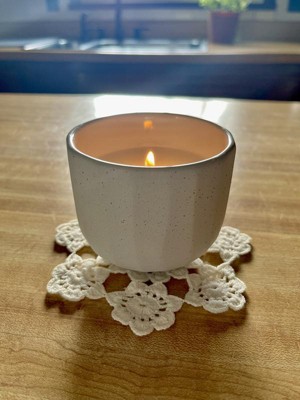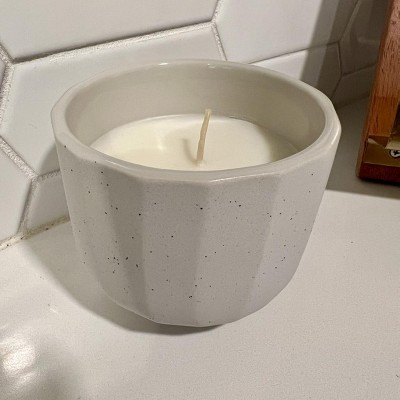 The candle is only 6oz, so it's not a huge commitment. The jar is heavy, thick, roughly textured, and very modern-farmhouse ceramic, which blends well to today's curated millennial home decor trends. The scent is a very light, sweet, floral-but-beachy/salty and I can appreciate the lightness since some candle brands are WAY too strong. This is not. I can't confirm the wax type but it seems to burn pretty cleanly.