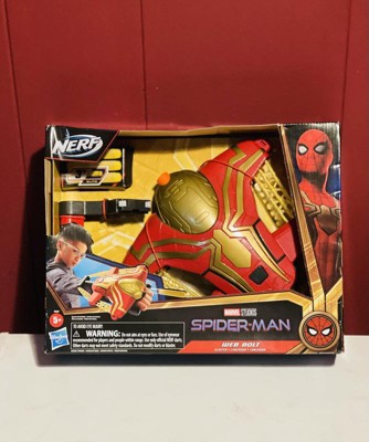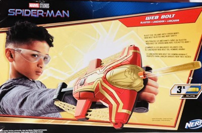 Swing into action with the Spider-Man Web Bolt Blaster Powered by Nerf! Kids can imagine joining the web-slinging hero with this movie-inspired wrist-mounted blaster that launches real Nerf darts.