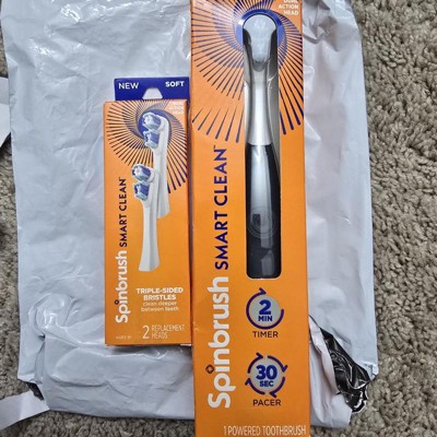 [This review was collected as part of a promotion.] "I'm obsessed with my new Spinbrush Smart Clean! This toothbrush is a game-changer - it's so easy to use and makes my teeth feel incredibly clean. The 30-second pacer and auto-shutoff features are genius, and the triple-sided bristles are amazing. I've noticed a huge difference in my oral health since switching, and I couldn't be happier. The midnight blue color is sleek and stylish too! Highly recommend upgrading to the Spinbrush Smart Clean - your teeth will thank you!"