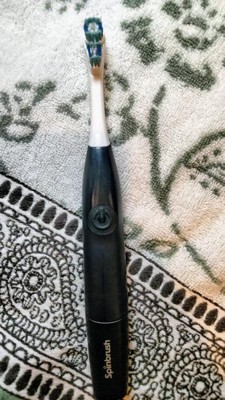 [This review was collected as part of a promotion.] This spinbrush works very well and leaves your mouth feeling nice and clean. It has color fading bristles that give you a visual reminder when it's time to replace the brush head. It works for 2 minutes and then shuts off automatically. After 30 seconds it will have a slight pause or stutter to let you know to move on to the next section so you can spend equal time cleaning every part of your mouth. Since it is powered by AA batteries I was expecting a weak or slow moving brush head, but was really surprised by how fast it actually moves. The only slight negatives for me are that it's a little bit awkward to get the brush head to reach the back molars, and the brush is louder than I expected. It's not too loud once it's in your mouth the sound is dampened and you tend to not even notice it. Overall this is a very good upgrade from a regular manual toothbrush.