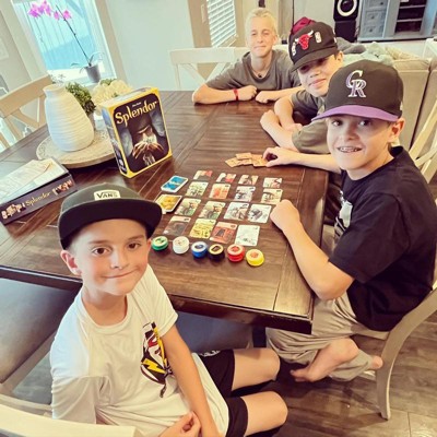 Splendor is a fantastic game not just for adults, but also for kids! Everyone battling for the nobles to be the best was so much fun. The ability to reserve cards that someone else wants made the game really tactical and made you feel so sneaky. The ability to play multiple games in a reasonable amount of time made it to where the kids don't get bored easily and look forward to not only their turn but also paying attention to how others playing effects their turn. Average game lasts around 20 minutes and setup is less than 5 minutes. It takes on average one game to understand the game. We are looking forward to getting the expansions to the game to see what changes. recommended for ages 10+ for 2- 4 players. Our son was able to grasp it and play at 9