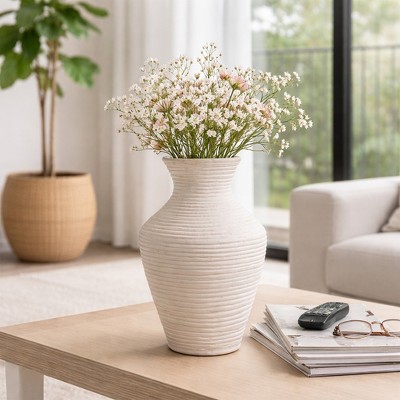 Material: This beautifully designed Tall Natural Balena Vase is made with heavy duty ceramic and features a beautiful organic rippled design. It's heavy structure makes it perfect for securing your blooms in place, leaving you without worry that they might blow over or get knocked around if displayed in your home.