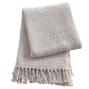 Our natural Open Knit throw is a great way to add texture to your living space. Its soft color allows it to blend in a variety of environments. This throw has fringe on each end, giving it a modern boho chic feel. Its woven design creates hole-like details that make this throw ideal for cool days.