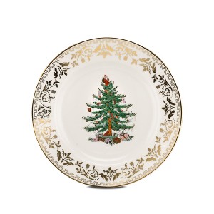 Spode Christmas Tree Gold Salad Plate, 8-Inch Porcelain Dinner & Appetizer, Holiday Christmas Dinnerware, Microwave & Dishwasher Safe